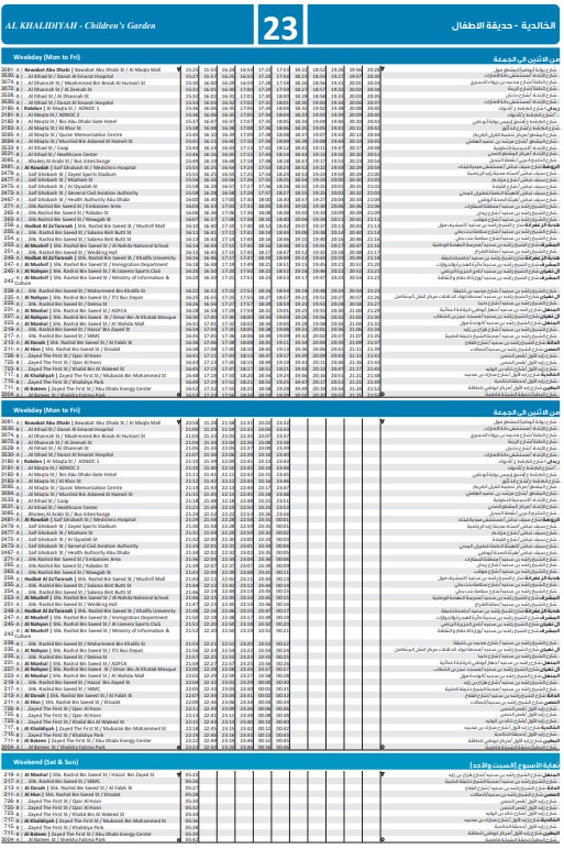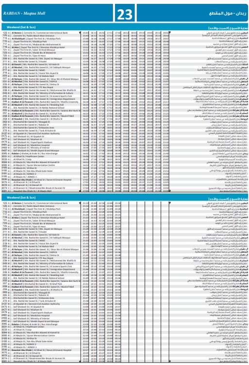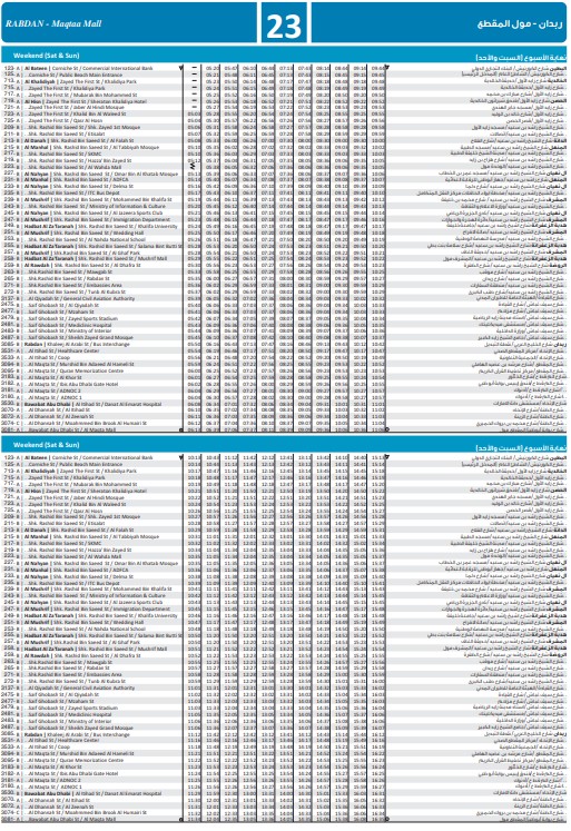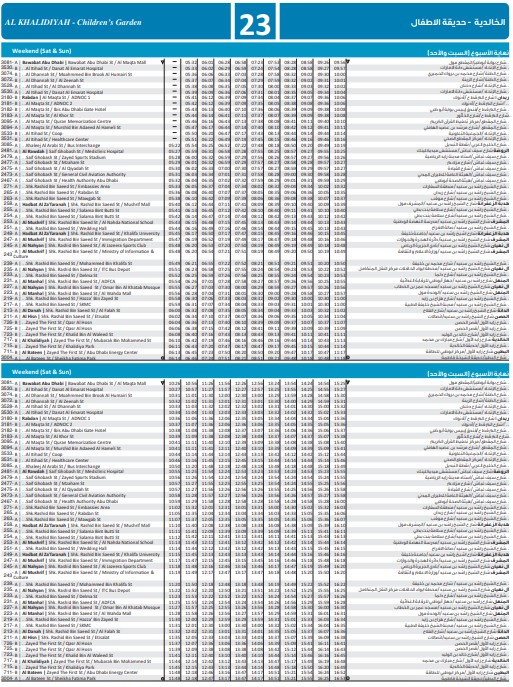 Abu Dhabi DOT Bus no: City Bus 23-Runs between Bawabat Abu Dhabi, Bawabat Abu Dhabi St / Coop and Al Bateen, Al Bateen St / Children’s Garden