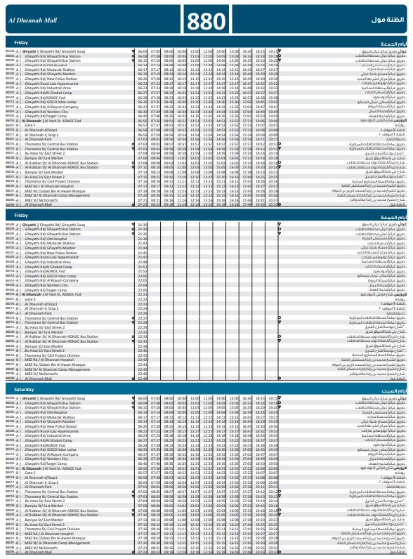 Abu Dhabi DOT Bus no: Reg Bus 880-Runs between Ghayathi, Ghayathi Rd/Ghayathi Souq and Ruwais Mall